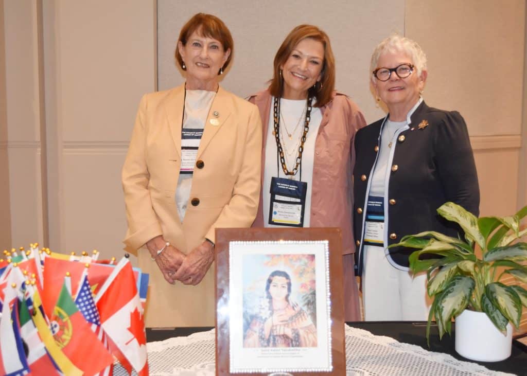 Speakers earlier in the day included WUCWO Regional Vice-President for North America Barbara Dowding, who introduced the member organizations in the North American region: the Ukrainian Catholic Women’s League of Canada (UCWLC) with President Marlene Bodnar, National Council of Catholic Women with former president and Parliamentarian Lucy Johnson, Knights of Peter Claver Ladies Auxiliary (KPCLA) with Supreme Lady Hilda Wiltz and National Lay Member of the Board Esohe Asimota.