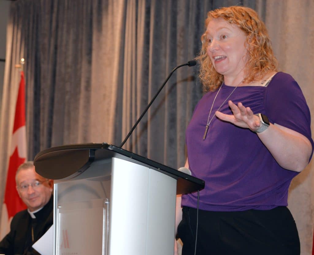 Welcome and greetings were given by Rev. Robert O’Brien, Pastor of St. Paul’s Basilica, Colleen Martin, Ontario Provincial President, Most Reverend Alan Campeau, Bishop of Thunder Bay, Rev. Liborio Amaral, Toronto Diocesan Spiritual Advisor, David Gelinas, State Deputy of the Knights of Columbus, Kate O’Quinn, Toronto Diocesan President, Monica Santamarina, President General of the World Union Of Catholic Women’s Organisations, and Shari Guinta, National President.