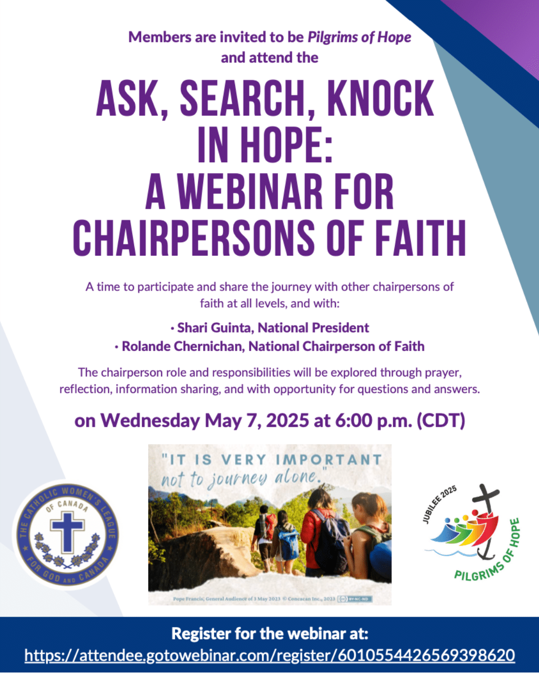 Members are invited to be Pilgrims of Hope and attend the