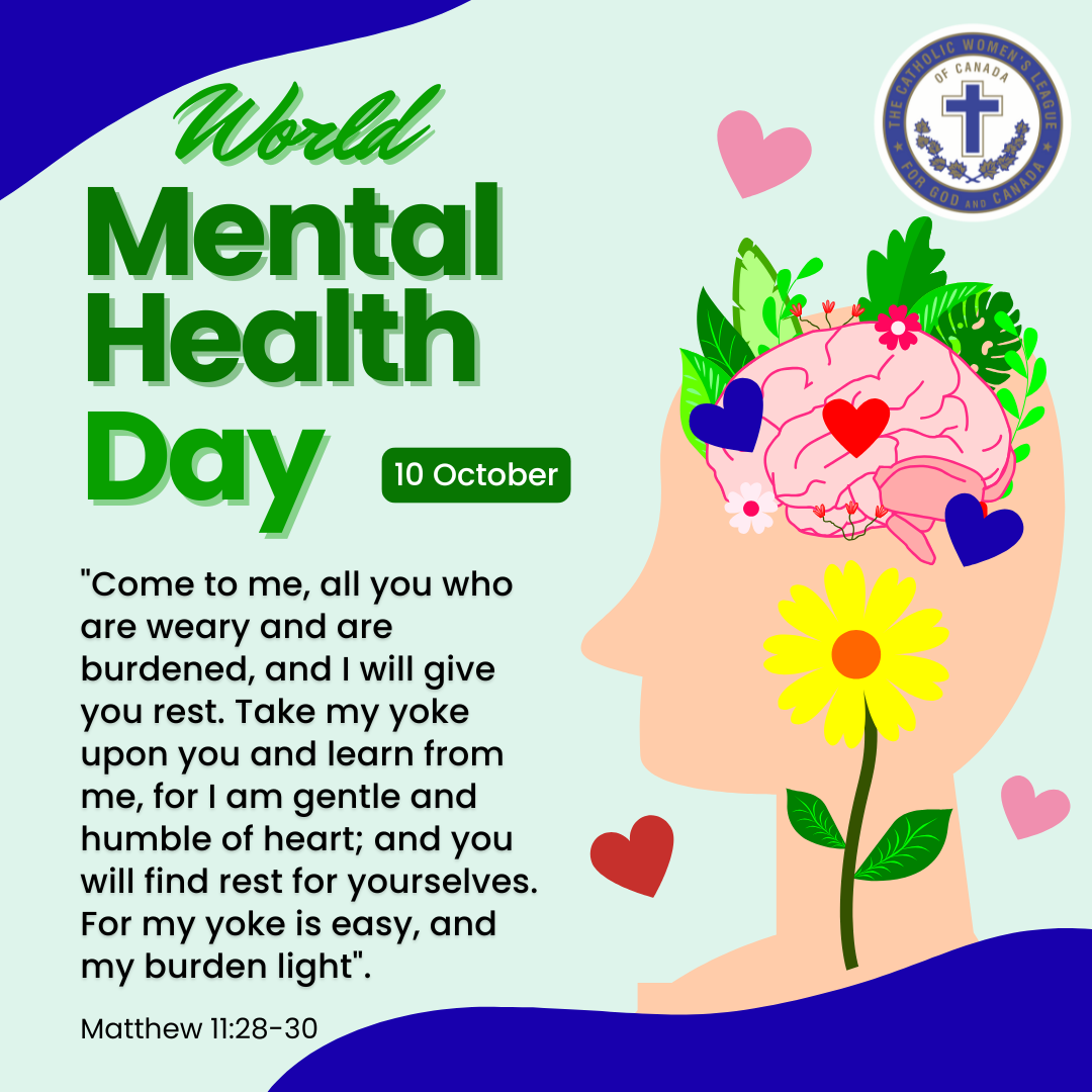 October 10th is World Mental Health Day. Many of us will experience a mental health challenge at some point in life. Regardless of the struggles we face in our lives, and indeed because of them, we are all welcomed and valued in the eyes of the Lord. We pray that ministries will help build communities of warmth and care where those who face mental health challenges will, in the words of Pope Francis, “find support and a light that opens them up to life.”
