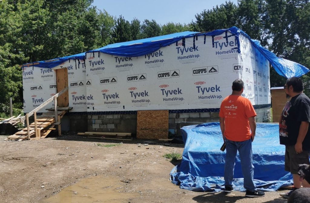 On July 24th, representatives of the London Region Councils of the London Diocesan CWL donated $7,450.00 towards the roof of a new home built by Imagine Build, a housing project for those in need on the Indigenous reserve, Oneida Nation of the Thames.