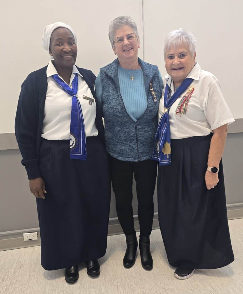 Life Members Josephine Phiri and Faith Anderson joined Manitoba Provincial President Lucille Rossington at the Annual Day of Celebration. Both members wore the ceremonial outfit adopted by Mary, Mother of the Church Parish Council (St. Boniface, MB) for special events and ministries at Mass.