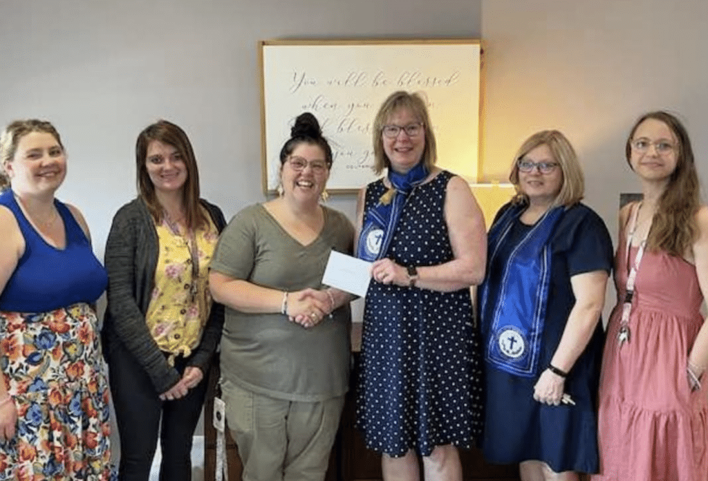 Funds from the New Brunswick Provincial Council Convention were raised in support of Sanctuary House – Women’s Shelter in Woodstock. Since 1991, Sanctuary House has been supporting and empowering survivors of domestic violence. On behalf of the League members across New Brunswick, Kathy LeBlanc presents a cheque of $1,150.00 to Melody Dickinson of Sanctuary House.