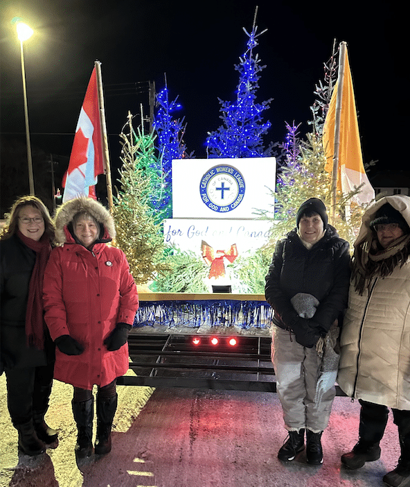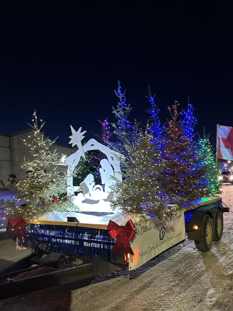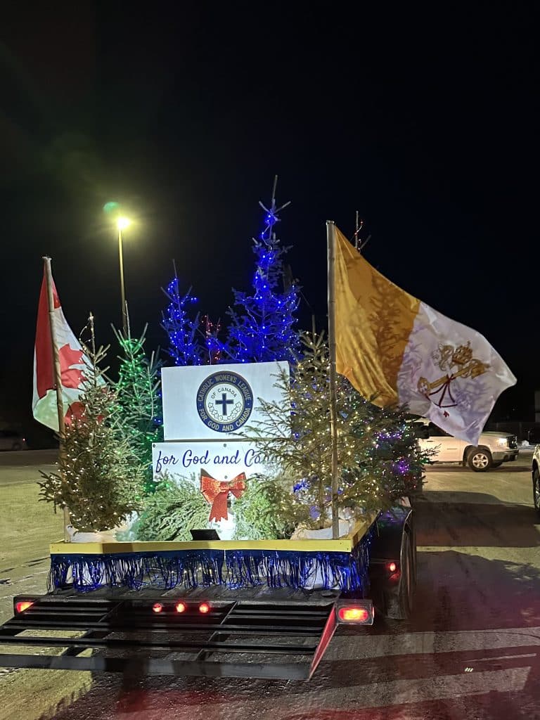 Promoting Christ in Christmas as well as the League, Notre Dame de Lorette Parish Council (Lorette, MB) members braved -24 C weather to accompany their float in the annual Parade of Lights, handing out treats to the enthusiastic crowds who had gathered along the almost one kilometre parade route.