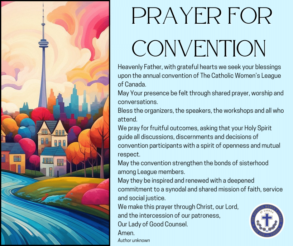 In August, members from across Canada will gather in Toronto for the annual convention of The Catholic Women’s League of Canada, joined by clergy and guests. Registration to attend the convention online remains open. Members are invited to join in praying the attached prayer for the success of the convention.